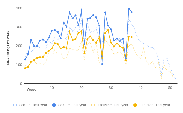 Seattle: 378 new listings last week, down 4.8% w-o-w