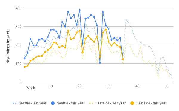Eastside: 123 new listings last week, down 34.9% w-o-w