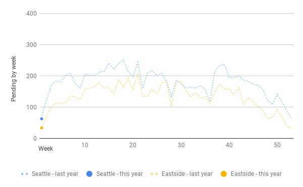 Seattle: 62 pending last week, down 28.7% w-o-w