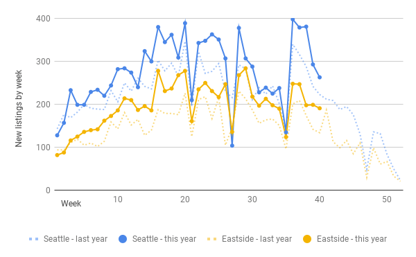 Seattle: 262 new listings last week, down 10.3%% w-o-w