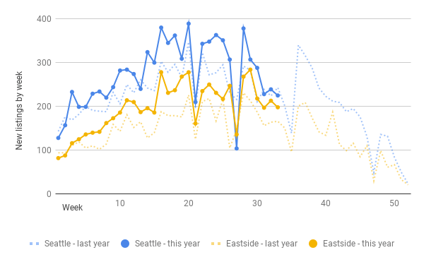 Eastside: 197 new listings last week, down 7.1% w-o-w
