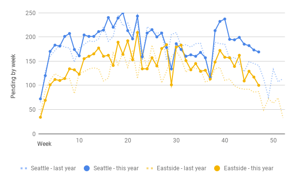 Seattle: 169 pending last week, down 2.3% w-o-w