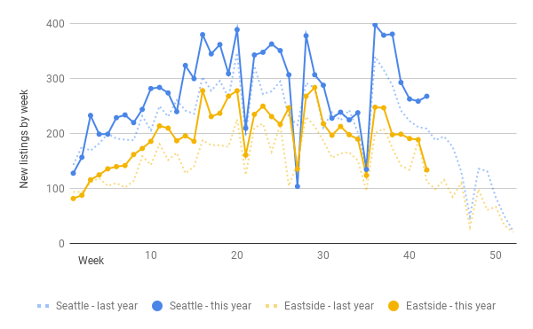 Eastside: 133 new listings last week, down 29.3% w-o-w
